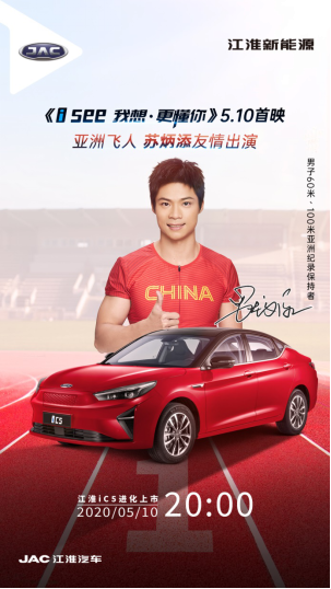 5月10日,江淮新能源旗下高能纯电轿跑iC5即将耀世登场。与其他品牌车型上市不同,江淮iC5将携《I See我想·更懂你》上市影片来袭,堪称史上“最会玩”的新品上市发布会。不仅如此,亚洲飞人苏炳添将参与影片演出并现身发布会现场,为您讲述平凡人的逐梦之旅。
