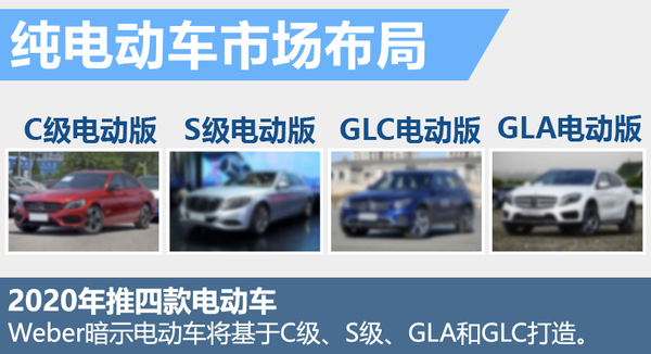 在推进混动车布局的同时奔驰还计划2020年底之前推出4款纯电动车,包括两款轿车和两款SUV。虽然奔驰官方尚未公布全新电动车的更多细节信息,但Thomas Weber暗示全新电动轿车将基于奔驰C级和S级打造。而两款纯电动SUV车型则有望归入奔驰GLA级和GLC级产品线当中。