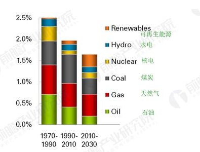 具体来说,2010-2030年,世界一次能源消费预计年均增长1.6%,全球能源消费总量到2030年将增加39%。全球能源消费的增速下降,从过去十年的年均2.5%下降到未来十年的年均2.0%,2020年至2030年间会进一步下降到年均1.3%。
